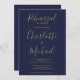 Convite jantado para ensaio de assinatura azul e dourada de marinho elegante, com nomes de estilo de assinatura, este convite para na moda pode ser personalizado com as suas informações em letras de ouro cômico. Projetado por Thisnotme©