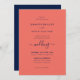 Convites Marinho de Script Moderno Casamento Azul e Coral