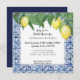 Antigos padrões japoneses Shibori eram designs de corantes de gravata complicados que crescem em popularidade hoje. Este índigo, marinho azul e branco casado fundo maravilhosamente com o tema dos citros de limão. Ideal para um casamento rústico e elegante de fazendas, um limão ou um chá de jardim do quintal íntimo. Mão pintada em aquarelas na canvas Copyright, Audrey Jeanne Roberts.