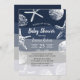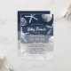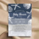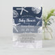 Starfish de praia e conchas, Marinho legante, Blue Baby Shower Invtions.