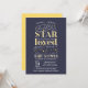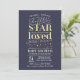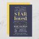 Este belo convite para o chá de fraldas apresenta uma poeira de estrelas e a frase "brilha, brilha, estrela pequena, você sabe o quanto você é amado" em amarelo e marinho - faz um excelente de chá neutro!