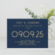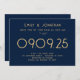 Marinho de Tipografia Simples Moderna Azul e Casamento Dourado. elegância moderna com este texto clássico totalmente personalizável apenas design. Personalize facilmente as palavras e, se você tiver um site de casamento, gere automaticamente um código QR para ele no verso substituindo o URL de amostra para o URL do seu site de casamento. Você pode excluir o código QR de amostra se não for necessário por meio da opção editar mais, onde você também pode editar cores de texto e estilos e cores de fundo em cada lado, se desejar.