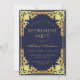 Este elegante convite de festas de aposentadoria de ouro azul-marinho com ar vintage, recomendado para um homem, tem um quadro de folha de ouro falso-ornamentado com decorações elegantes de ouro barroco sobre fundo azul-marinho. O nome está escrito em uma caligrafia elegante. Todo texto pode ser personalizado e tem uma cor amarela ouro semelhante à imagem falsa dourada. A safra, quadro de ornamentado, baseia-se numa antiga ligação francesa ao cobrir do livro, de Georges Mercier (1885-1939) - Madame de Maupin, por Teophile Gautier, edição de 1911, agora no dominio público.
