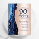 convite de aniversário marinho azul e rosa dourado 90. Elegante design moderno com cor azul-real de água agate marble geode background, faux glitter rosa gold e typografia script font. Trendy convida o cartão perfeito para uma comemoração de dia das mulheres na moda. Impressos convites Zazzle ou modelo de impressão digital instantânea para download.
