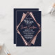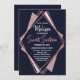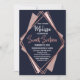 Elegante, chic e moderno com uma vibração retrorreflectora, esboços impressos em forma de diamante geométrico rosa de ouro em azul marinho, mauve e recorte de diamante rosa esfarelado, convites de festas de celebração de 16 anos doces. Este design clássico e sofisticado é perfeito para a garota de aniversário de classe, tendências e na moda. Personalize com sua própria mensagem na frente e um monograma personalizado inicial no verso. Todas as impressão de fotos.