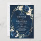 Convite para casamento floral azul-escuro marinho com elegante buquê de azul-marinho, azul-real, branco, ouro, marfim de champanhe, rosa de cor escamosa, hydrangea, ranunculus, pénia, botões de flores e folhas de eucalipto verde-sábio e elegante cor de água com estrutura neutra geométrica de brilho redondo. Entre em contato comigo para obter ajuda sobre a personalização ou se você precisar de outro produto com este design.