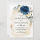Chá de panela floral azul-marinho escuro com um buquê elegante de azul-marinho, azul-real, branco, ouro, marfim de champanhe, rosa de cor azul-claro, hidrangea, botões de flores ranunculus e folhas de eucalipto verde-sábio e uma elegante cor de água com estrutura geométrica de brilho redondo. Entre em contato comigo para obter ajuda sobre a personalização ou se você precisar de outro produto com este design.
