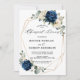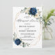 Janto de ensaio floral azul-escuro, azul-marinho, Convite com buquê elegante de azul-marinho, azul-real, branco, ouro, marfim de champanhe, rosa de cor escamosa, hydrangea, ranunculus, pénia, botões de flores e folhas de eucalipto verdes-sábio e uma elegante cor d'água com uma estrutura geométrica neutra arredondada. Entre em contato comigo para obter ajuda sobre a personalização ou se você precisar de outro produto com este design.