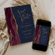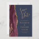 Este elegante e moderno salve a placa de data apresenta uma borda geode de cor d'água burgundy, aparada com falso brilho dourado. O texto dourado aparece sobre um fundo azul marinho. Substitua facilmente a imagem de amostra no lado oposto por uma foto vertical da futura noiva e noiva.