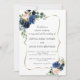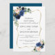 Convites Marinho Dourado de luxo Flores Azuis Flores Bloom