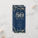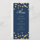 Design de "Programa de Festa de aniversário" elegante com Glitter Confetti no Dourado e Marinho com texto personalizado.