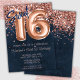 Marinho rosa Dourado Blue Sweet 16 Convite de aniversário e rosa de ouro elegante e moderno convite de aniversário 16 para uma menina de 16 anos com escrevendo moderno de escrita e balões de folha divertida.