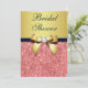 Ouro personalizado elegante, coral, convites de chá de panela azuis marinhos com lindas sequências, arcos e fitas impressas brilhantes e diamantes bonito bordando joias em um fundo glamouroso de gradiente de ouro. NOTA: Estes são gráficos impressos em formato simples - sem peças levantadas.Se você precisar de ajuda para personalizar seu produto, entre em contato comigo através da minha loja. Ficarei feliz em ajudar. Eu tenho produtos correspondentes para casamentos na minha loja. Copie e cole este link no seu navegador para ver a coleção de casamento de cheio: https://www.zazzle.com/collections/gold_navy_coral_sequins_diamonds_bow_wedding-119988723868626389 Se você quiser ver este design em outros produtos que não estão na coleção, entre em contato comigo através da minha loja através desta página de produto.