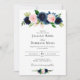 marinho e pincelado tema de casamento floral rosa. O texto e as cores podem ser editados.