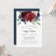 Com uma paleta de cores muito rica de burgundy, azul marinho, rosa-pincelado e verde, este chá de panela moderno tem um buquê de florescências radiantes derramando-se do topo da design acima do seu texto personalizado. O buquê inclui os rosas, as bagas, o eucalipto e a folha verde. O texto modelo é uma combinação popular de elementos sérvios elegantes misturados com o tipo de rosto manuscrito para o nome da noiva. O verso do convite é um azul marinho sólido que combina as flores marinhos do buquê. Personalize o texto com os detalhes do seu chá de panela.