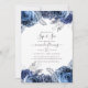 As flores marinhos e brancas picam e veem o convite com folha fina prateada e tipografia elegante de escrita manual.