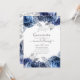 Marinho e flores brancas quinceanera convidam com folha de falso prateado e tipografia elegante de escrita manual.