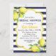 Os limões amarelos brilhantes contra um fundo de marinho listrado definirão o pano de fundo perfeito para o seu chá de panela. Edite facilmente para adicionar suas informações de evento. Excelente para Chá de panela, festas de chá de noiva, Brunches de noiva e muito mais. Itens correspondentes para esta coleção estão disponíveis no nosso compro!