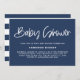 Convite simples e bonito para o chá de fraldas, com uma caligrafia moderna e fofa sobre um fundo azul marinho com padrão de listras. Personalize adicionando nomes, data, hora, local e outros detalhes. Este convite para chás de fraldas brancos e azuis é perfeito para chás de fraldas neutros de gênero e para quaisquer estações e temas.