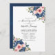 Trendy blush cor-de-rosa e azul-marinho, chá de fraldas floral de longa distância por correio com elegante tipografia de escrita manual"