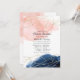 Convite virtual online de longa distância para chás de fraldas com marinho azul e cor-de-água rosa pincelada e um quadro geométrico dourado.