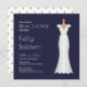 Marinho e Chá de panela branco. Honre a Noiva de Ser, com um evento especial de Chá de panela só para ela. Este Chá de panela foi projetado sobre um fundo marinho com texto branco e decorado com um esboço elegante do Bridal Gown. O texto inclui: Nome da noiva, Data do Chá, Hora, RSVP e Detalhes do host. O verso é projetado com um esboço do palhaço de noiva em um centro de marinho, com uma borda branca e pontos de marinho. Para personalizar, basta inserir seus detalhes em nosso modelo fácil, substituindo o texto de exemplo.