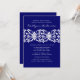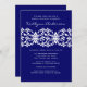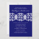 Comece seu evento bem com nosso Chá de panela apresentando uma bela damask branca em um fundo de marinho rico. Combinação de cores azul de marinho e branco. Personalize nosso convite com suas informações de chá de casamento e você está pronto para ir. Disponível em outras combinações de cores em www.celebrateitinvites.com