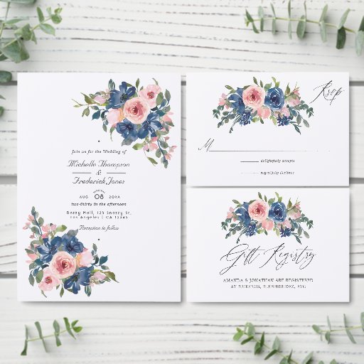 Convites Marinho e Chá de panela de Casamento Floral Blush