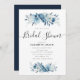 tema do casamento azul com flores azuis e brancas. O texto e as cores podem ser editados.