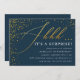 Convites de festas Surpresa de Script de Confetti de marinho e Dourado. Shhh.. É uma surpresa! Comemore sua festa de aniversário surpresa com esses convites na moda com faux gold foil confetti e script contra um marinho de fundo azul. Seus detalhes aparecem na tipografia elegante da serifpografia.