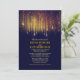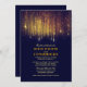 Marinho e convite de casamento dourado visualizando pequeno confete de folha de ouro e pequenas luzes de cordas penduradas no teto. Design deste convite de casamento faz um efeito deslumbrante e é cheio de luzes sonhadoras, faíscas e brilho. Parece chique e sofisticada para a vintage, mas moderna, tema de casamento... para casamento com luzes de cordas, para noiva com ouro e decoração de vestidos de marinho ou para aqueles com cerimônia de casamento com dedo de ouro.