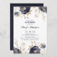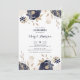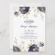 Convide sua família e amigos para sua Quinceañera com este convite elegante. Apresenta flores e folhagem azuis e marfim marinhos, com folhas de golfe falso e acentos de brilho. Personalize adicionando seus próprios detalhes de evento. Você também pode adicionar uma foto ou outra imagem no verso do convite. Este convite floral é perfeito para festas de aniversário de primavera e inverno.