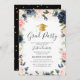 Este design apresenta o design floral marinho azul e cor-de-água rosa com cores e texto editáveis. Você pode personalizar os detalhes deste cartão de convite de graduação.