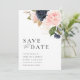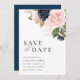 marinho de aquarela moderno azul e borrão floral guarde o cartão de casamento. O texto e as cores podem ser editados.