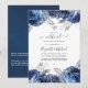 Marinho e flores brancas convite virtual de casamento de longa distância com sotaques de prata de folha falsa.