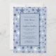 Jogue uma festa de chá de fraldas, simples e divertida com estes convites de chuveiros de bebês de estrelas de marinho, suaves e doces, azuis e brancas. Estes convites personalizados de chás de fraldas apresentam um padrão estrelado, pintado manualmente, de cor azul e branca, como uma borda em volta do seu texto personalizado. Estes cartões de convite são totalmente personalizáveis. Para editar o texto, clique em "personalizar este modelo".