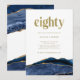 Estes convites de aniversário elegantes e modernos de 80 apresentam um aspecto escuro, azul marinho, de geode, com um texto moderno dourado falso que diz "oitenta".