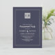 Convites Marinho Elegante Azul | Festa de noivado prateada