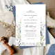 Aprecie os amigos e a família com este elegante convite para casamento com um delicado verde-aquarela e azul e floral branco armando seus detalhes de casamento. Elementos modernos de caligrafia escrita à mão. De volta em tom elegante de marinho. Também disponível em azul empoeirado ou em branco com floral. Parte de nossa coleção "Elegant Bliss" com uma variedade de convites coordenadores, inserções de cartões, acessórios de correspondência, salvamento de datas, cartas de agradecimento e sinais de eventos e produtos.