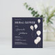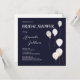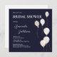 Elegante Marinho Branco Convite para Honrar a Noiva. Este Chá de panela Elegante foi projetado sobre um fundo marinho com texto branco e decorado com balões brancos e dourados. O texto frontal inclui: Primeiro e Sobrenome da noiva, Data do Chá, Hora e RSVP - Detalhes do host. O verso é um fundo branco com texto: Chá de panela no Marinho correspondente ao sotaque do balão. Para personalizar, basta inserir seus detalhes em nosso modelo fácil, substituindo o texto de exemplo.