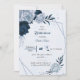 Convites marinho elegante chá de panela de flores azuis poe