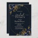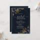 Flores azuis marinhos elegantes com folhas de ouro sobre fundo azul marinho. Um convite bonito que pode ser personalizado com seu nome. Selecione o botão "personalizar" para alterar o estilo, a cor e o tamanho da fonte.