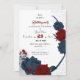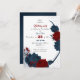 Flores azuis, vermelhas e marinhos elegantes e algumas lindas folhas convite de aniversário botânico