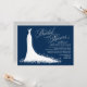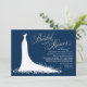 O chá de panela elegante para a noiva-a-ser apresenta uma fonte de escrita de caligrafia de ornamentado e um vestido de noiva fluente. O escroto floresce, flores e borboletas detalham o vestido etéreo. Cor branca, platina clara/prata e azul marinho (pode ser modificado) de design.