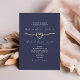 Este elegante convite de casamento azul marinho apresenta um símbolo romântico de corda de ouro e uma mistura de sorifas refinadas e fontes modernas de caligrafia. O layout minimalista oferece muito espaço para seus detalhes de casamento enquanto fazer uma impressão ousada e na moda. Perfeito para casamentos formais ou noturnos, esta design combina com celebrações náuticas, invernais ou sofisticadas de ouro. Totalmente personalizável com seus nomes, data, local e muito mais para um eterno e um pacote de artigos de papelaria coordenado.