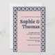 Convide os convidados para a sua celebração retróquica com o nosso Convite para Casamento de Meios séculos Geométricos do Marinho Blush. Apresentando um padrão geométrico cativante em uma sofisticada paleta de cores, este design combina o encanto de vintage com a elegância moderna. Perfeito para casais que buscam uma víbora de casamento de eterno, mas de moda. Explore toda a coleção para coordenar papelaria para completar sua consulta de casamento.