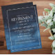 Convite de festas moderno, elegante, azul marinho e branco de aposentadoria. Texto, fonte e texto são completamente personalizáveis com a ferramenta design fácil de usar do Zazzle. Entre em contato conosco para obter ajuda com a personalização ou para solicitar produtos adicionais correspondentes.