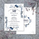 Este elegante convite para o aniversário de casamento do ouro 50º marinho azul floral floral pode ser personalizado com as suas informações na tipografia moderna. Projetado por Thisnotme©