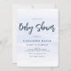 Simples e elegante convite para chá de fraldas branco e azul-água abstrato com marinho de cor azul com tipografia de script.