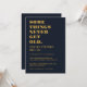 Celebre seu aniversário com estilo e humor! Este marinho minimalista, azul e ouro, o convite de aniversário engraçado é perfeito para aqueles que sabem idade é apenas um número e simplesmente mais uma vela para o bolo! Fácil de personalizar com qualquer idade, nome e detalhes da festa.